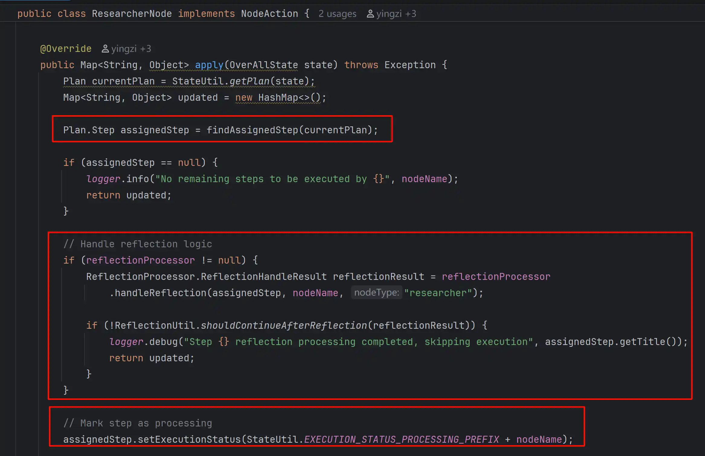 其中StepType用于区分是研究类的Step还是数据处理类的Step,如果是研究类的Step后续处理时则会进入ResearcherNode进行处理,如果是数据处理类的Step则会进入CoderNode进行处理