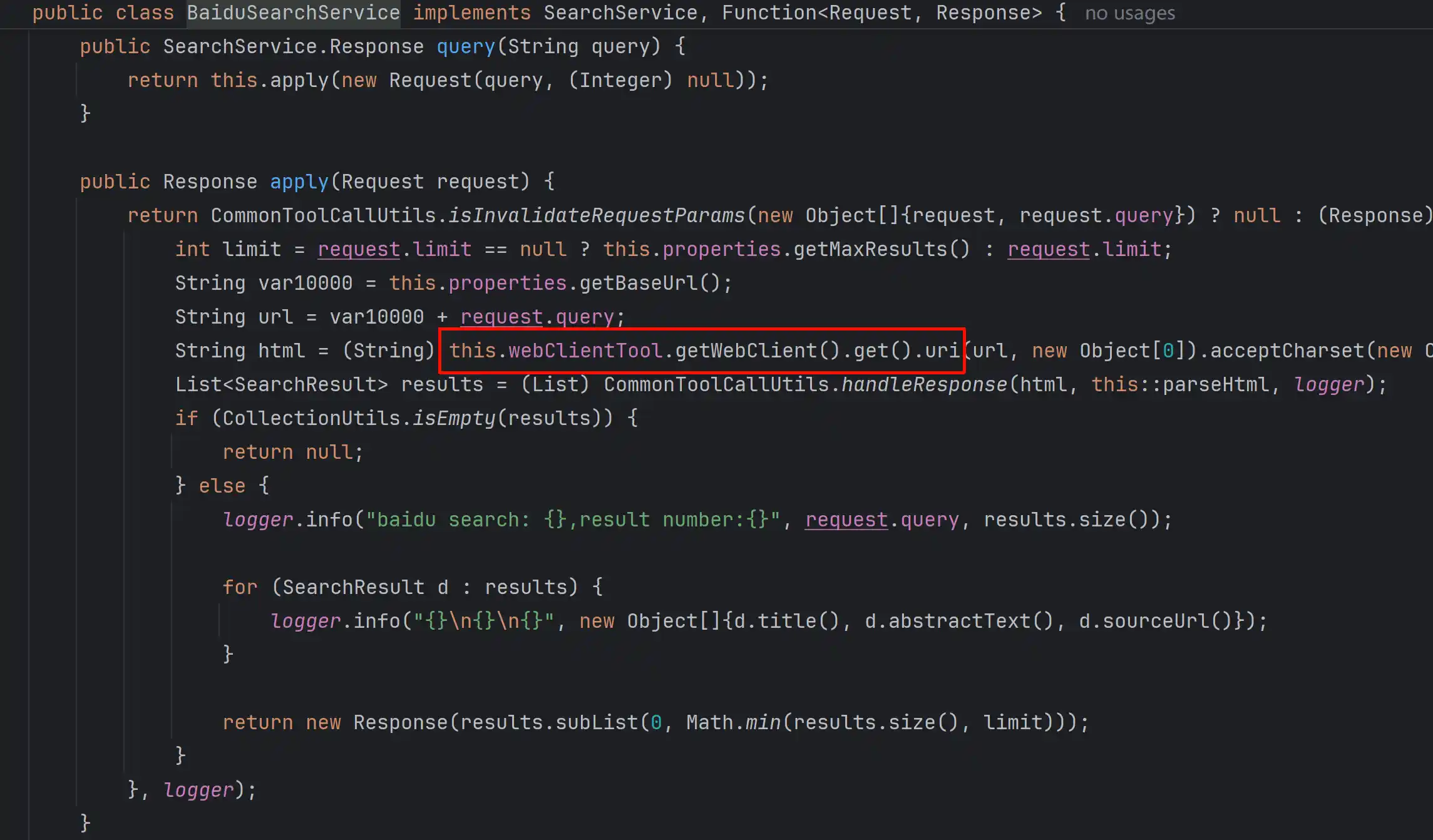logger.info("工具调用搜索完成: platform={}, results_count={}", platform.getName(), results.size());
