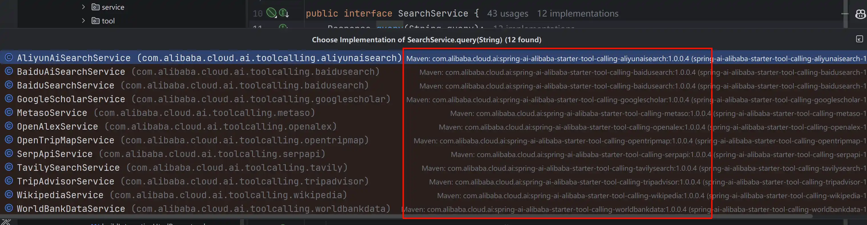 }具体的搜索服务实现由下列这些包提供