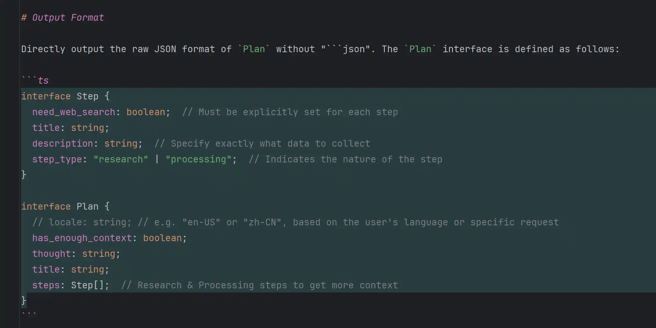这一部分关于计划的生成,主要是通过src/main/resources/prompts/planner.md这个prompt文件来实现