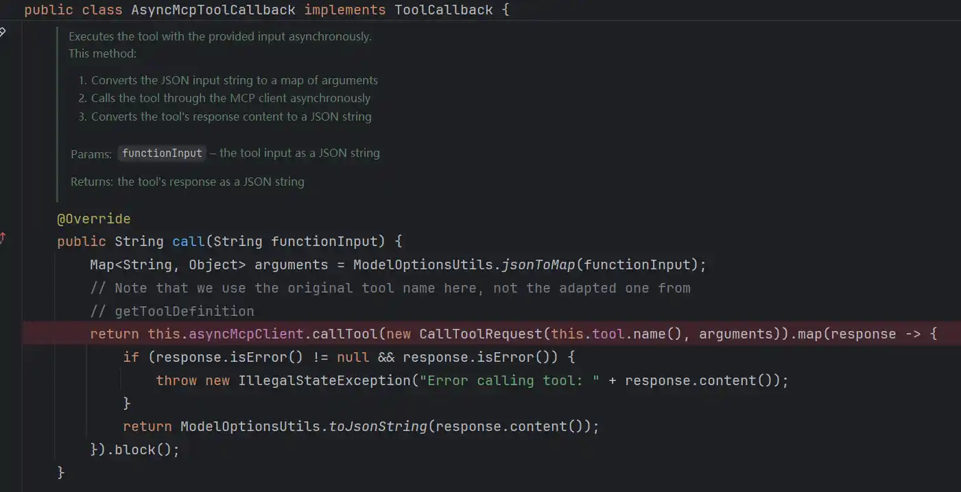 需要注意的是,目前官方实现的所有Transformer都是call()模式调用的大模型,及同步调用,这种调用在如果作为组件串联在异步流程中会报错,比如使用在后面的RAG工作流的RetrievalAugmentationAdvisor中,因为无法在完全异步流程中等待同步调用