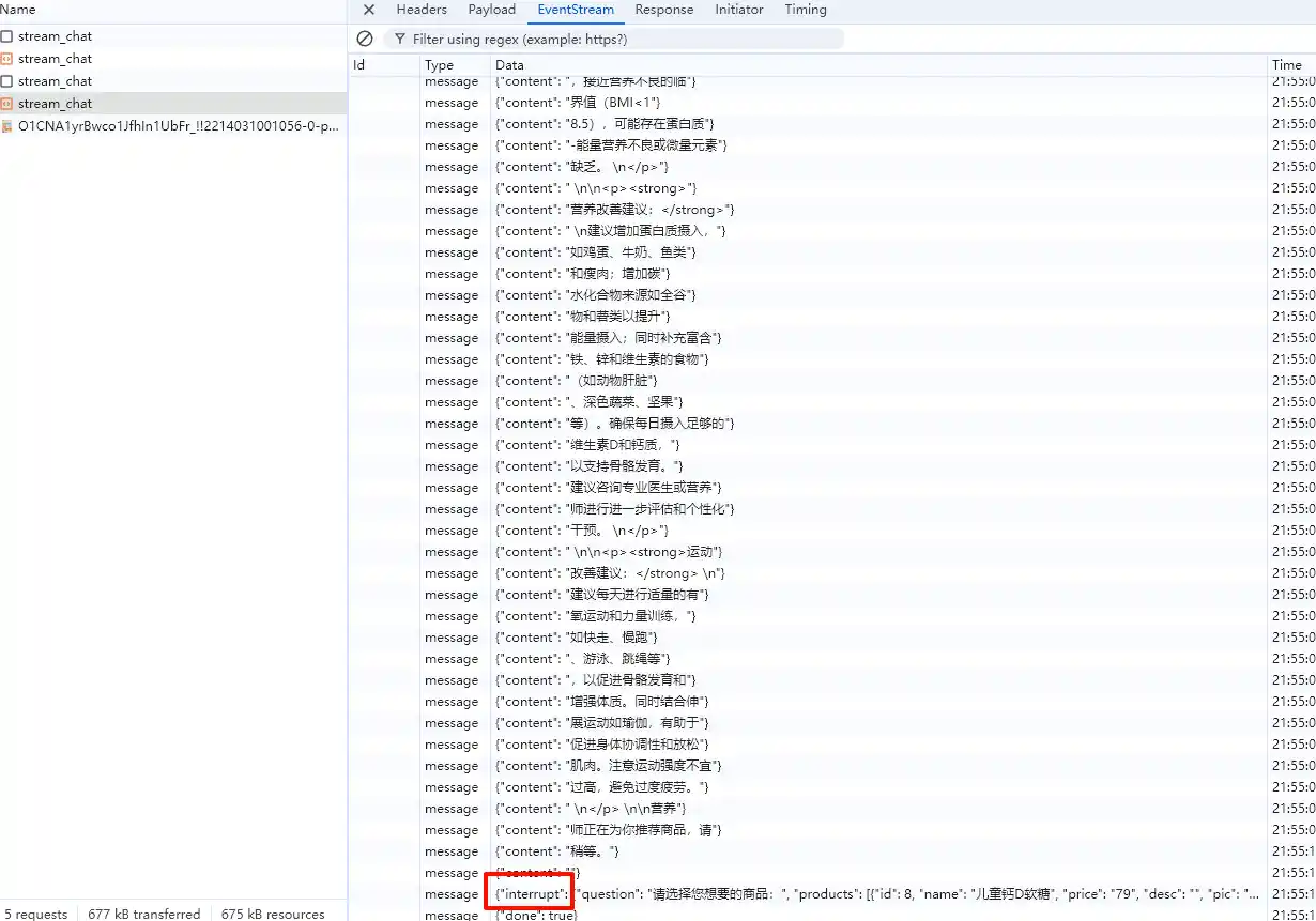 其中chat接口和断流恢复接口如下