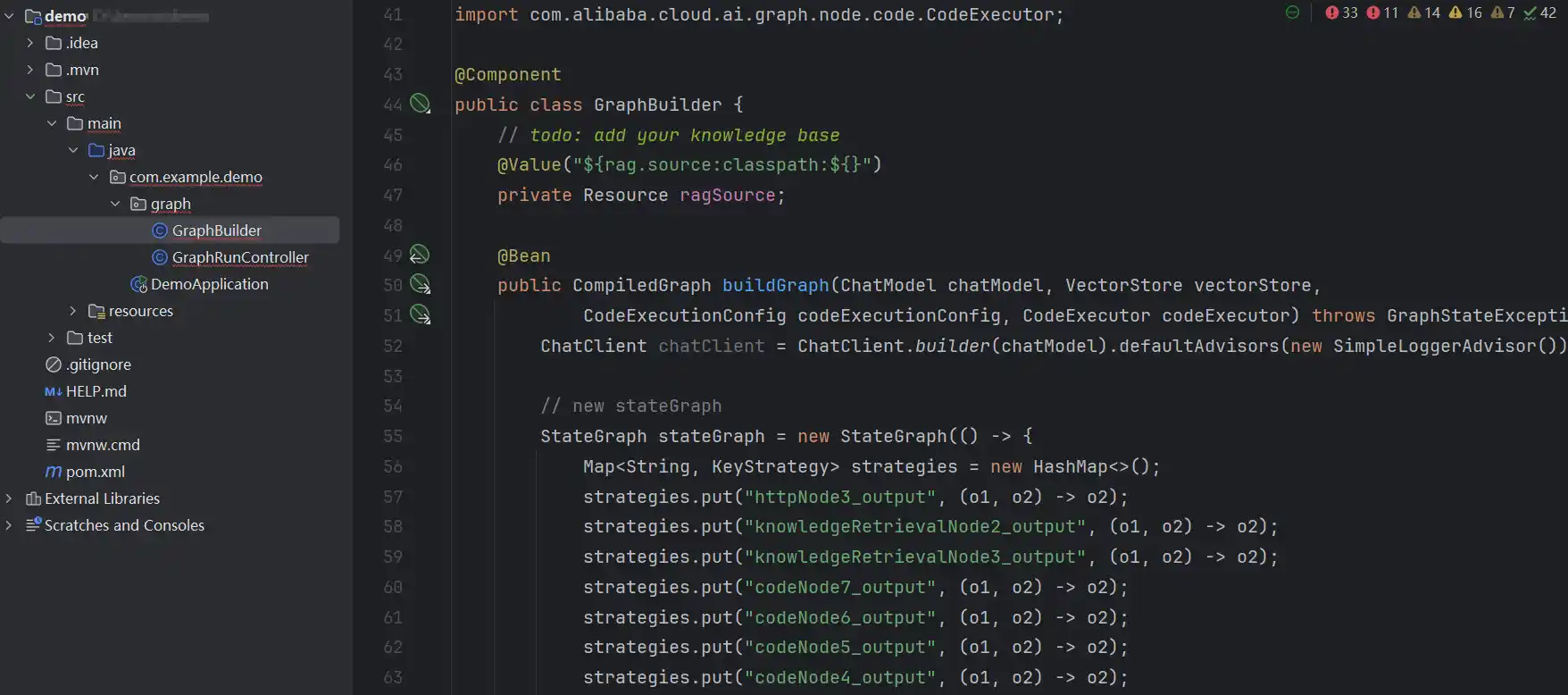 生成的项目打开就是基于Spring AI Alibaba Graph的项目了